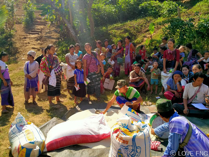 (▲태국 난민캠프 아이들을 위해 후원한 곡식을 나누는 모습)